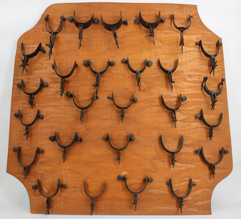 Twenty six Spurs mounted on Wooden panel