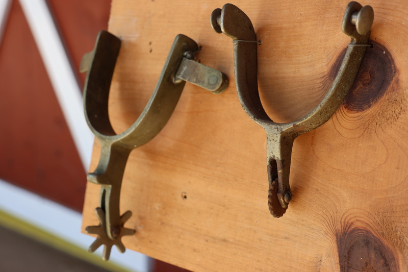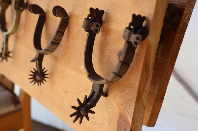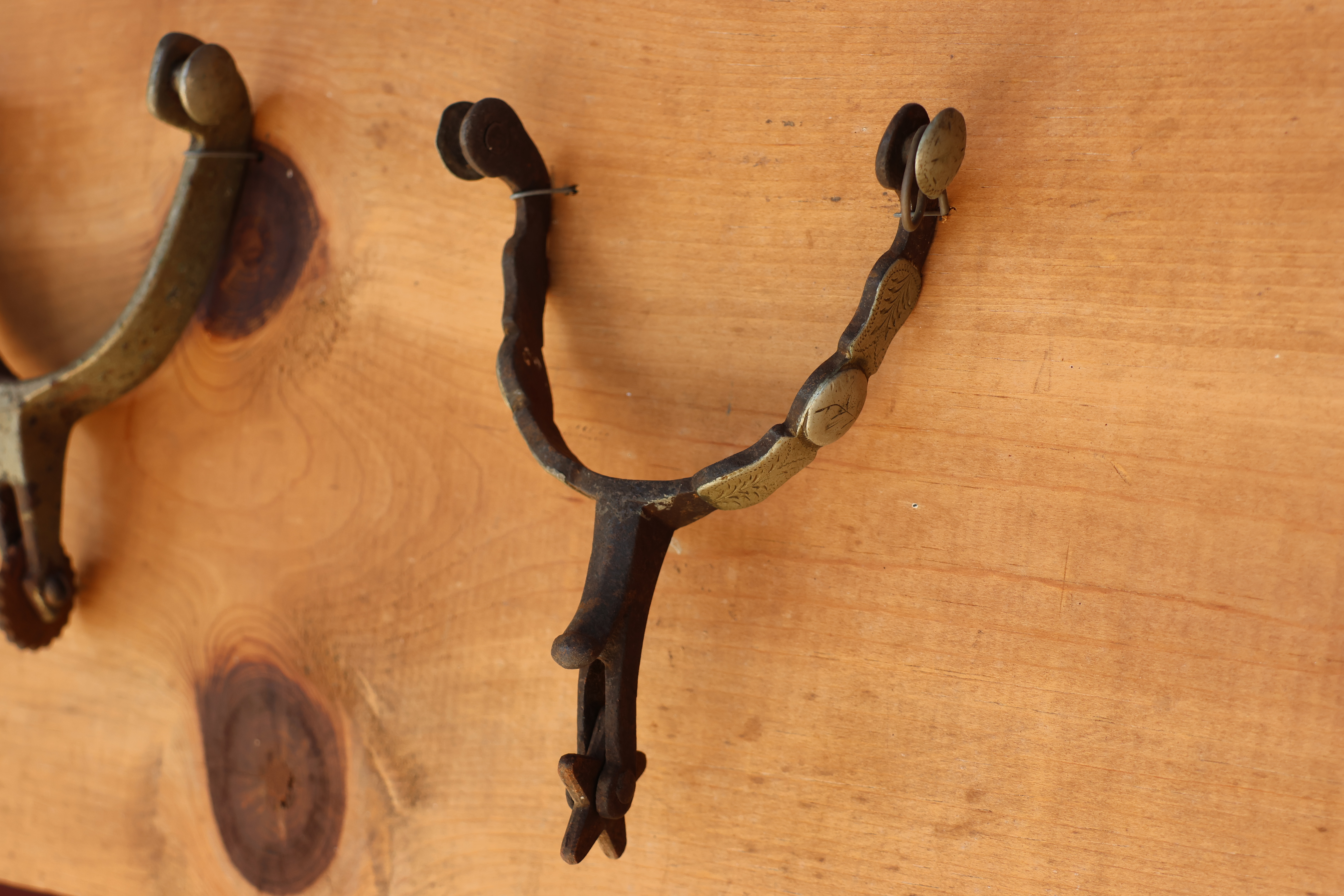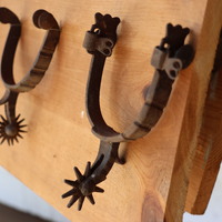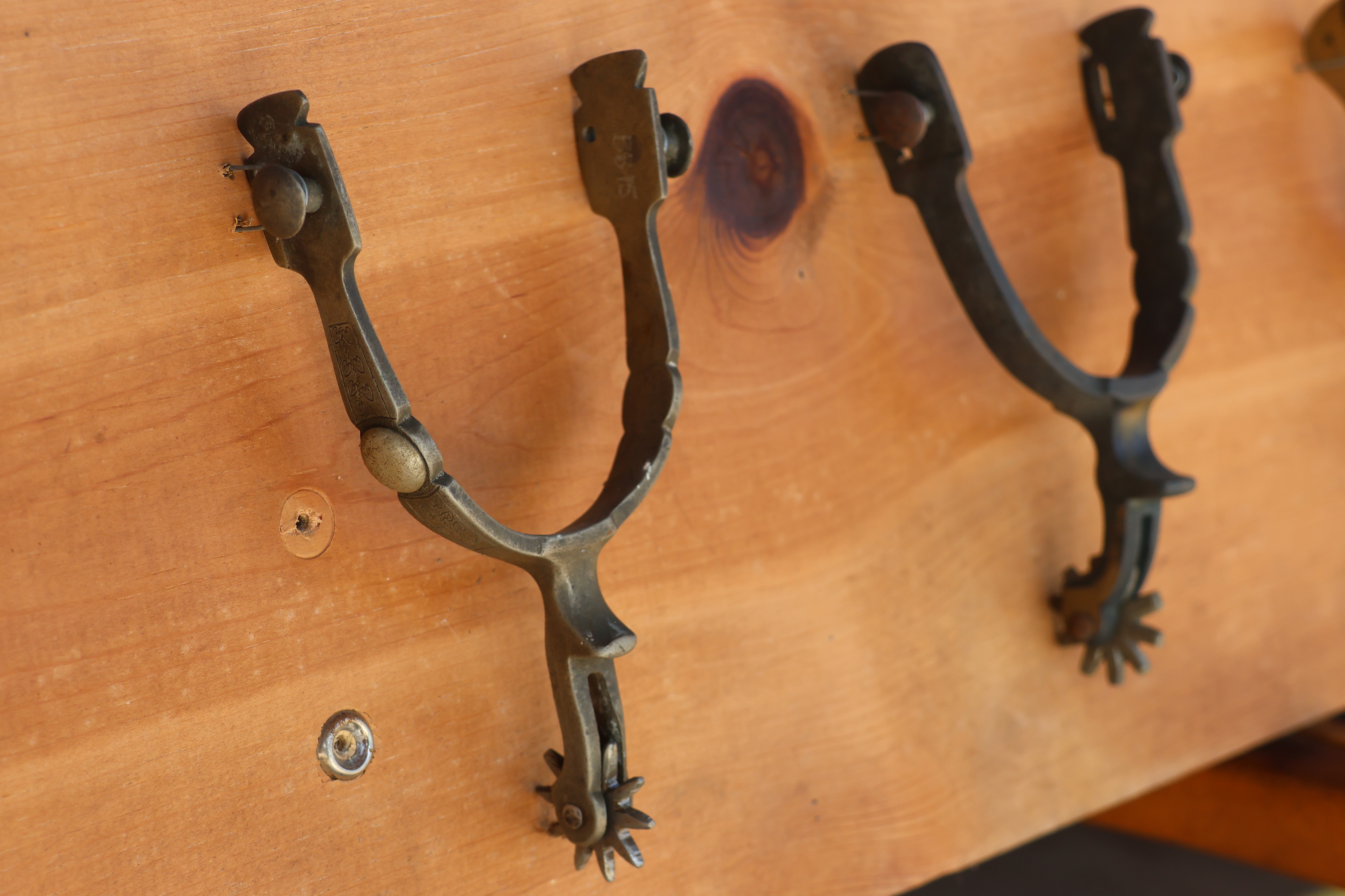 11 Spurs mounted on panel.